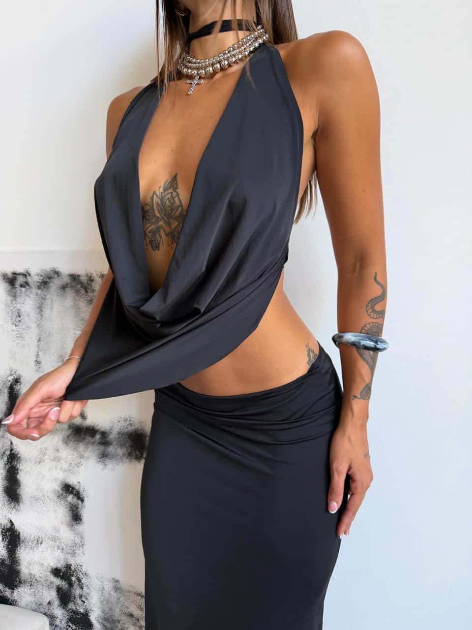 Blusa con espalda descubierta de microfibra. Talle unico (S al L).