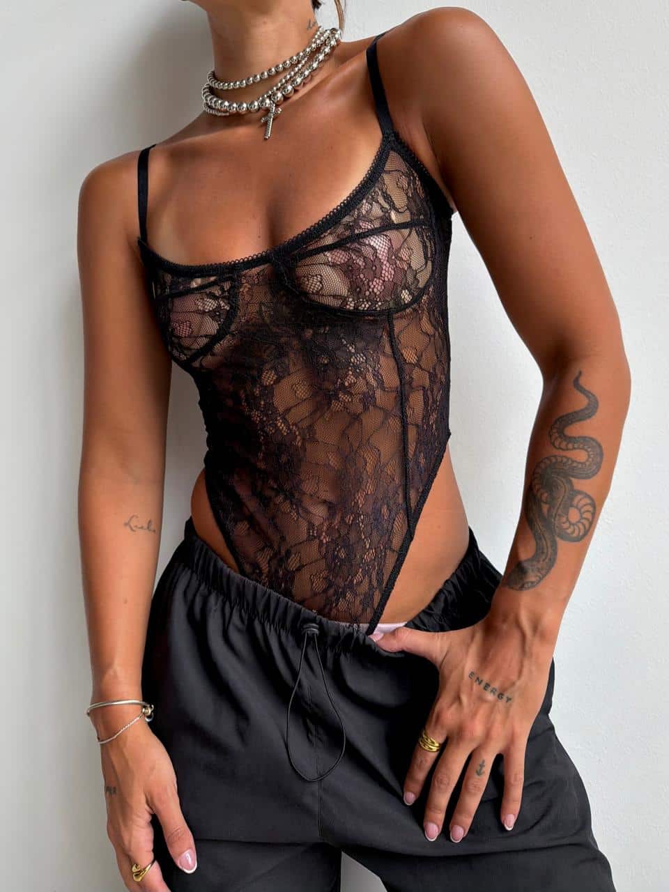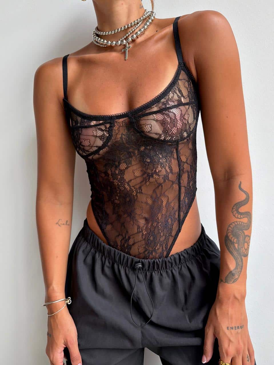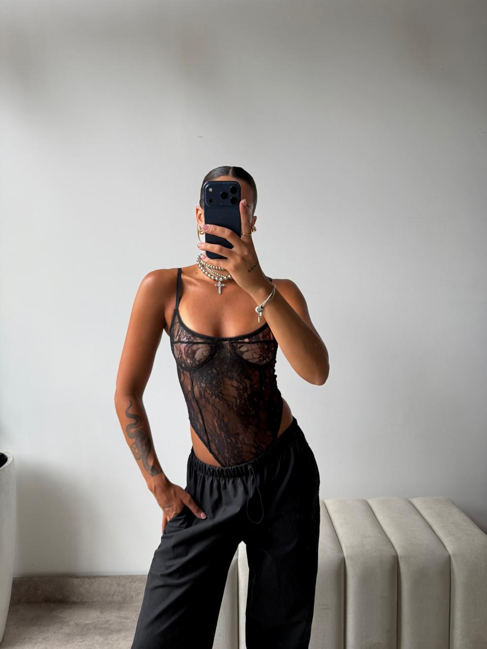 Body de encaje. Talle único (S al L aproximadamente).