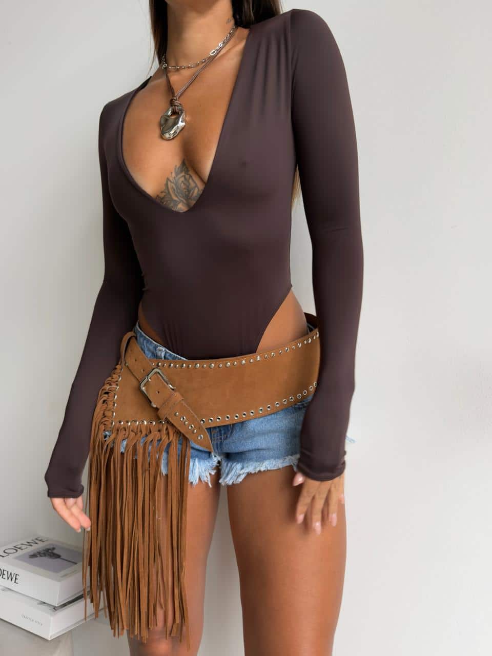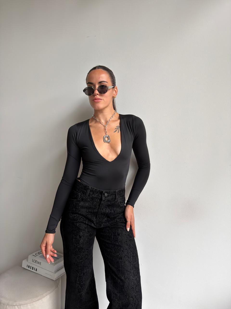 Body con escote V de microfibra. Talle único (S al L aproximadamente).
