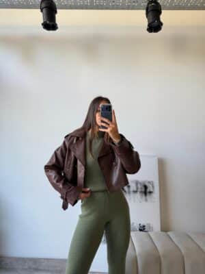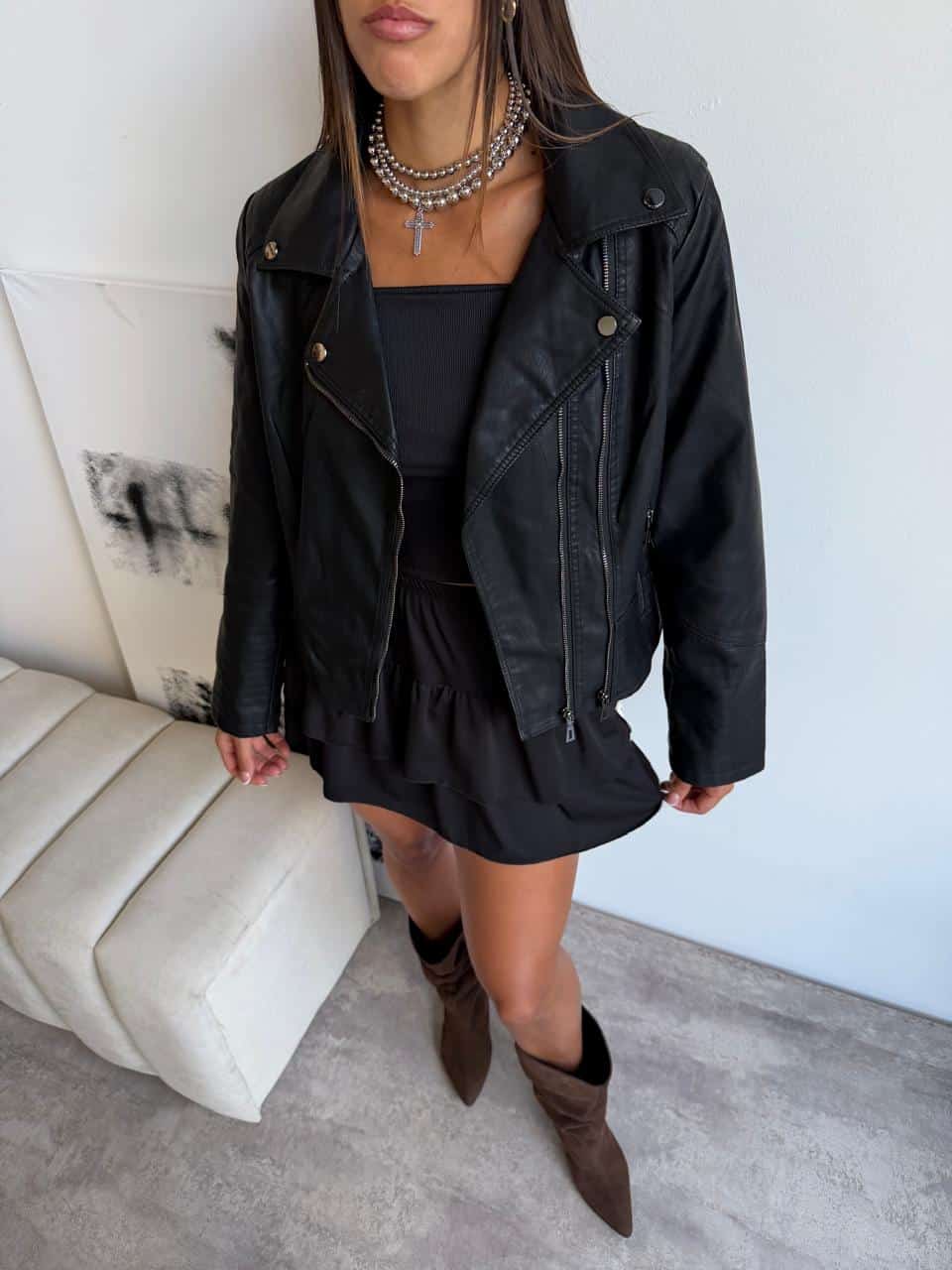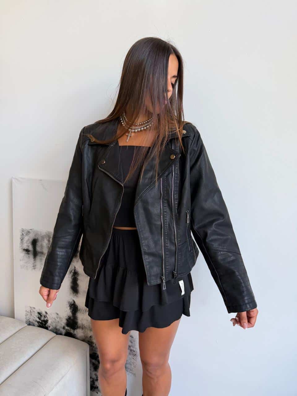 Campera de eco cuero. Talle único (S al L aproximadamente).