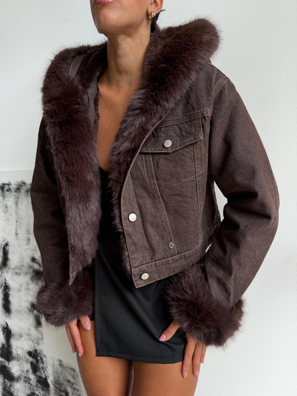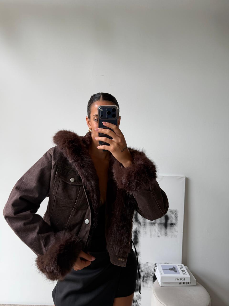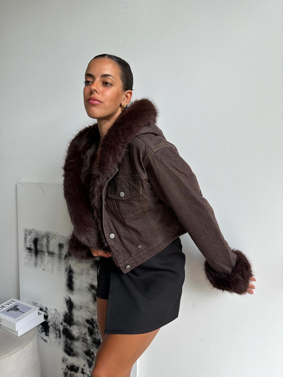 Campera de jean con simil piel desmontable. Talle unico (S al L aproximadamente).