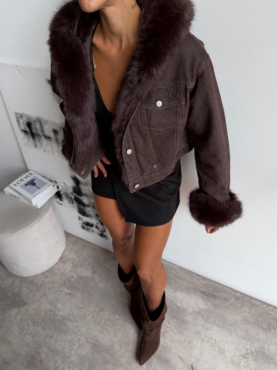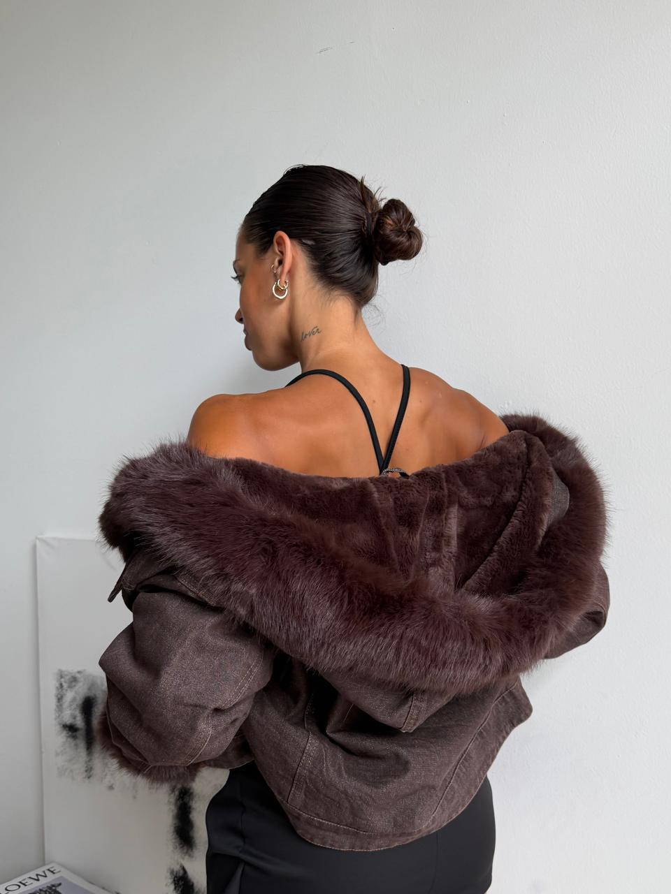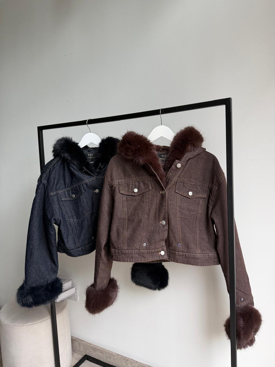 Campera de jean con simil piel desmontable. Talle unico (S al L aproximadamente).