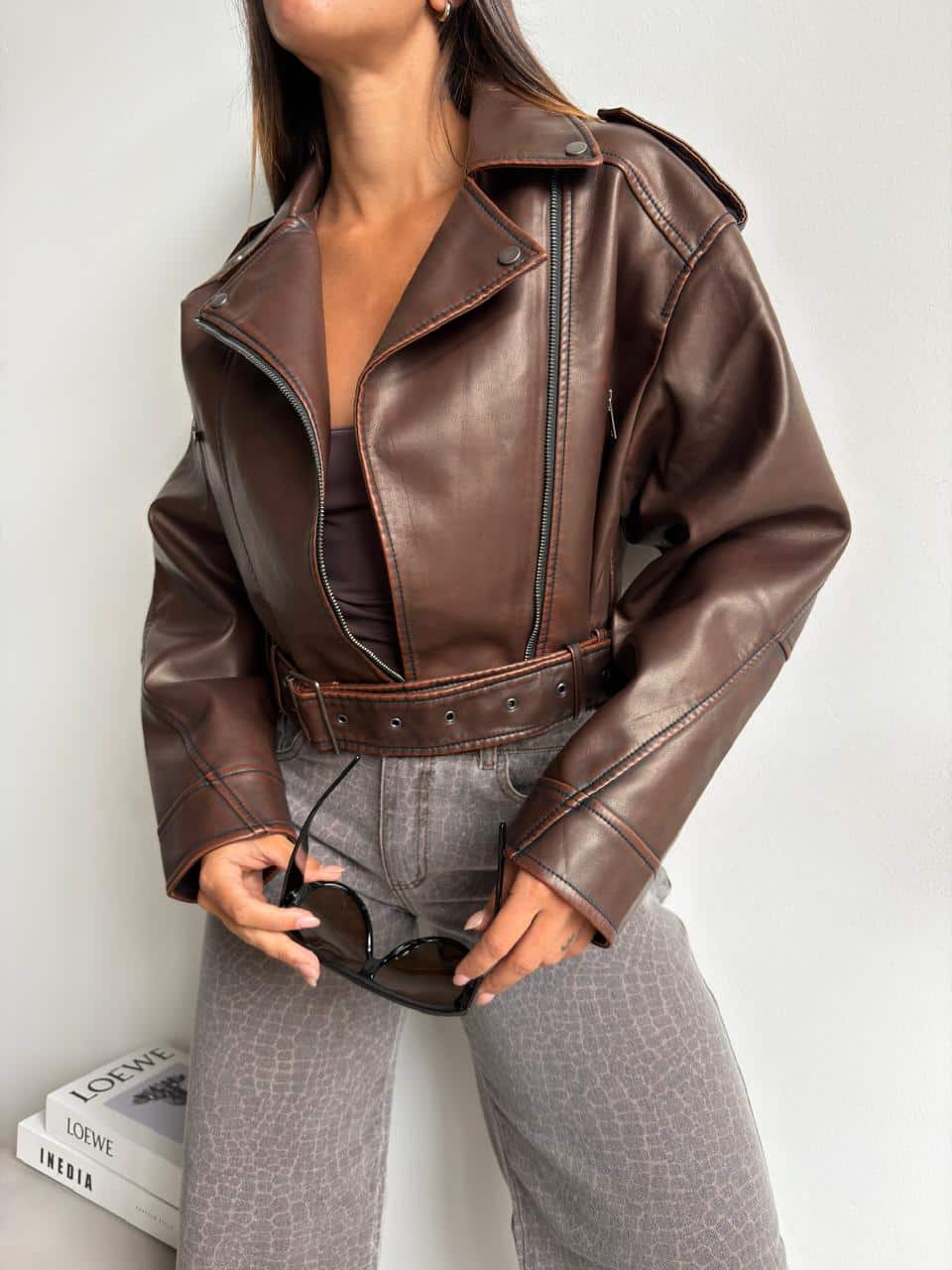 Campera de eco cuero. Talle único (S al L aproximadamente).