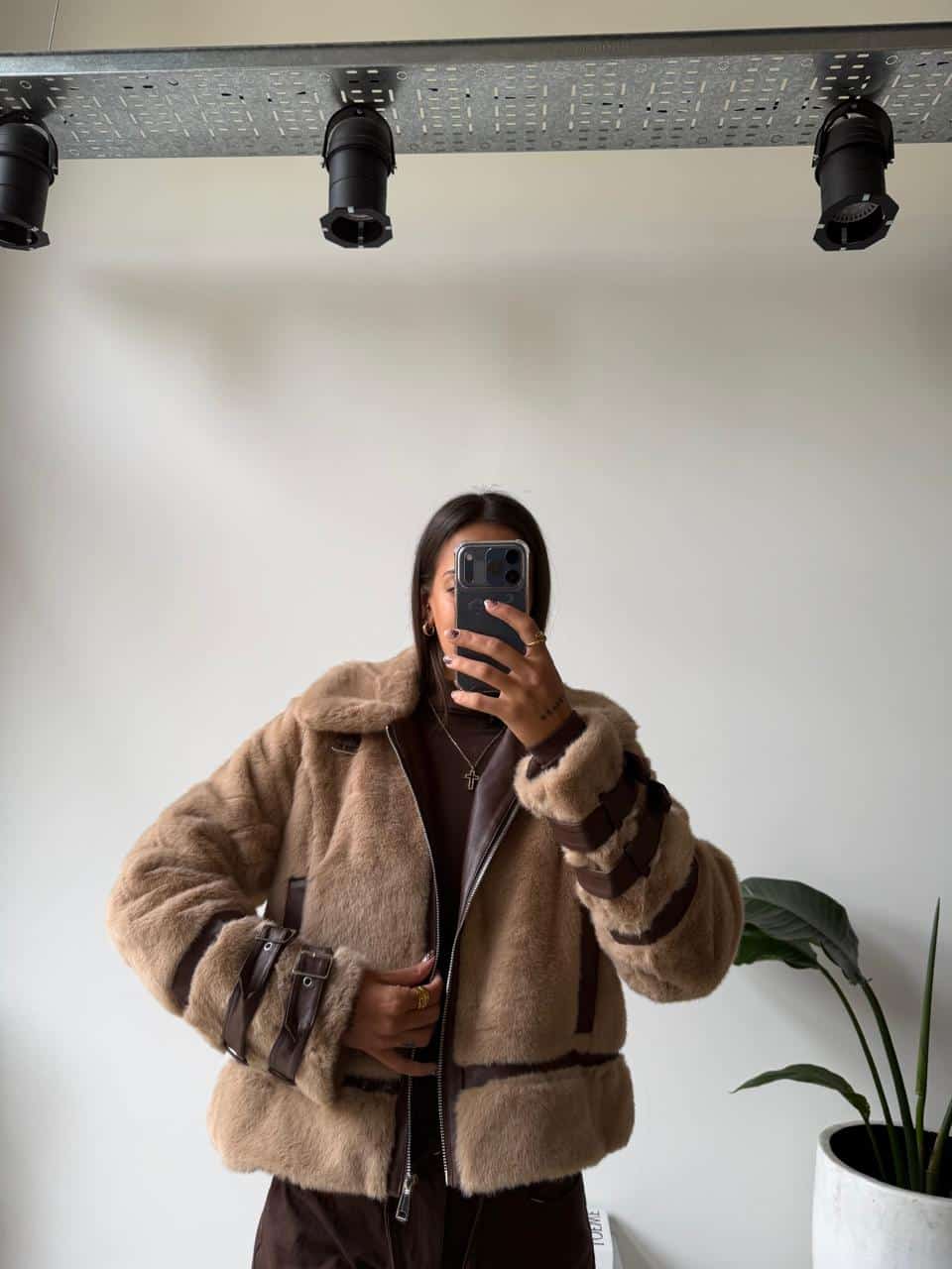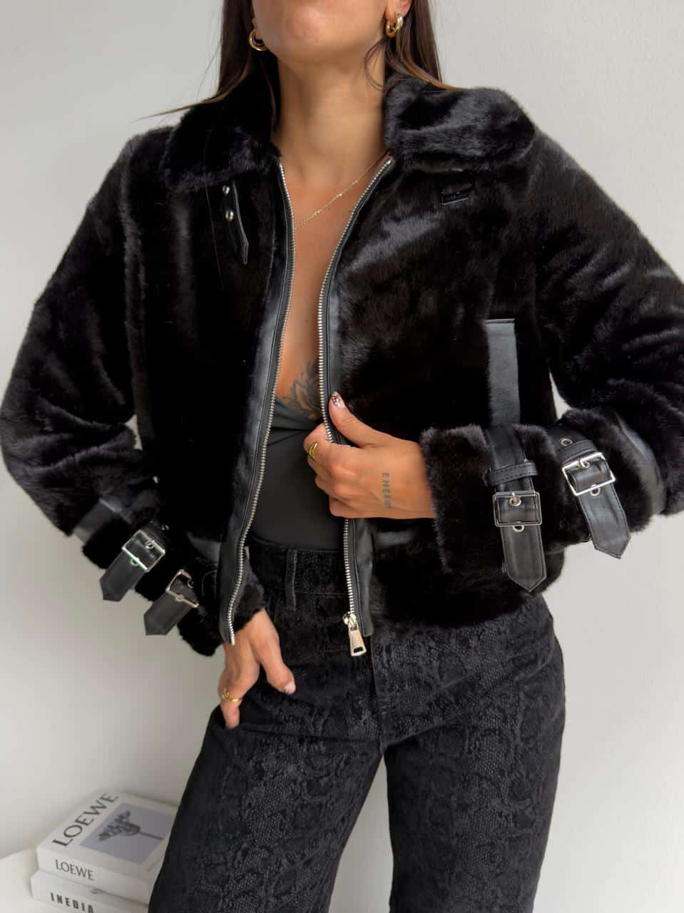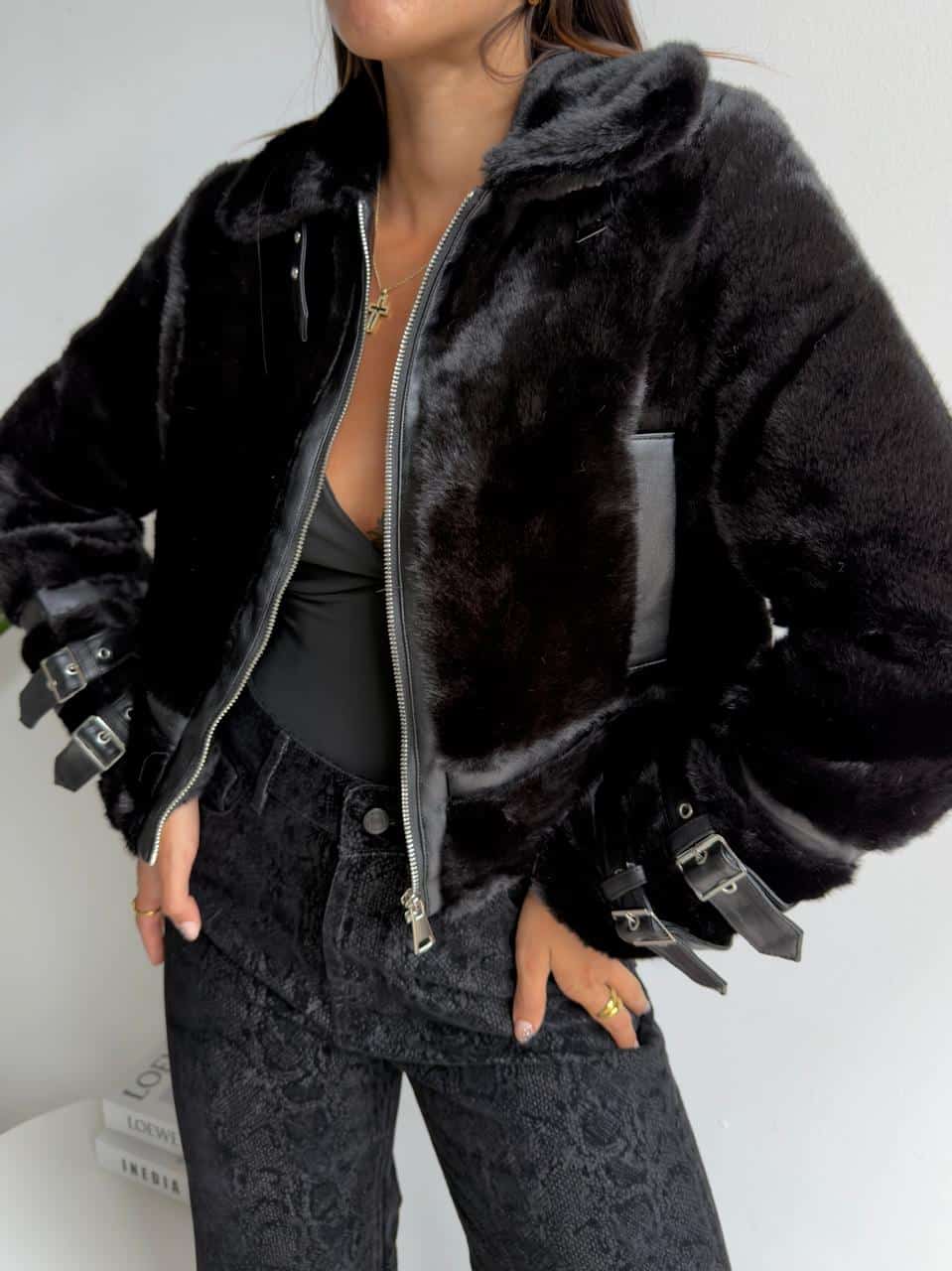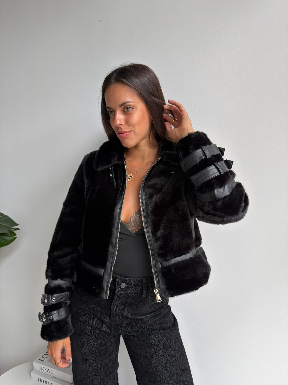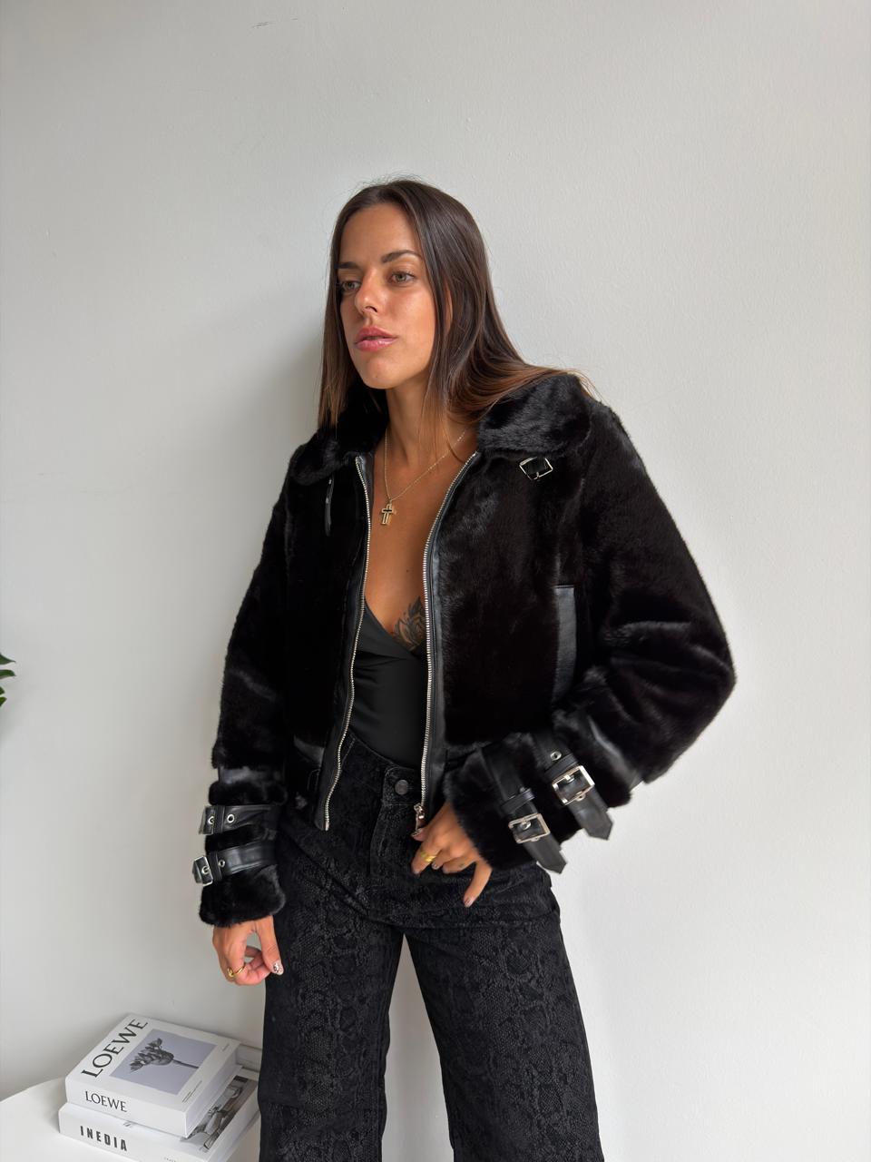 Campera de simil piel. Talle unico (S al L aproximadamente).
