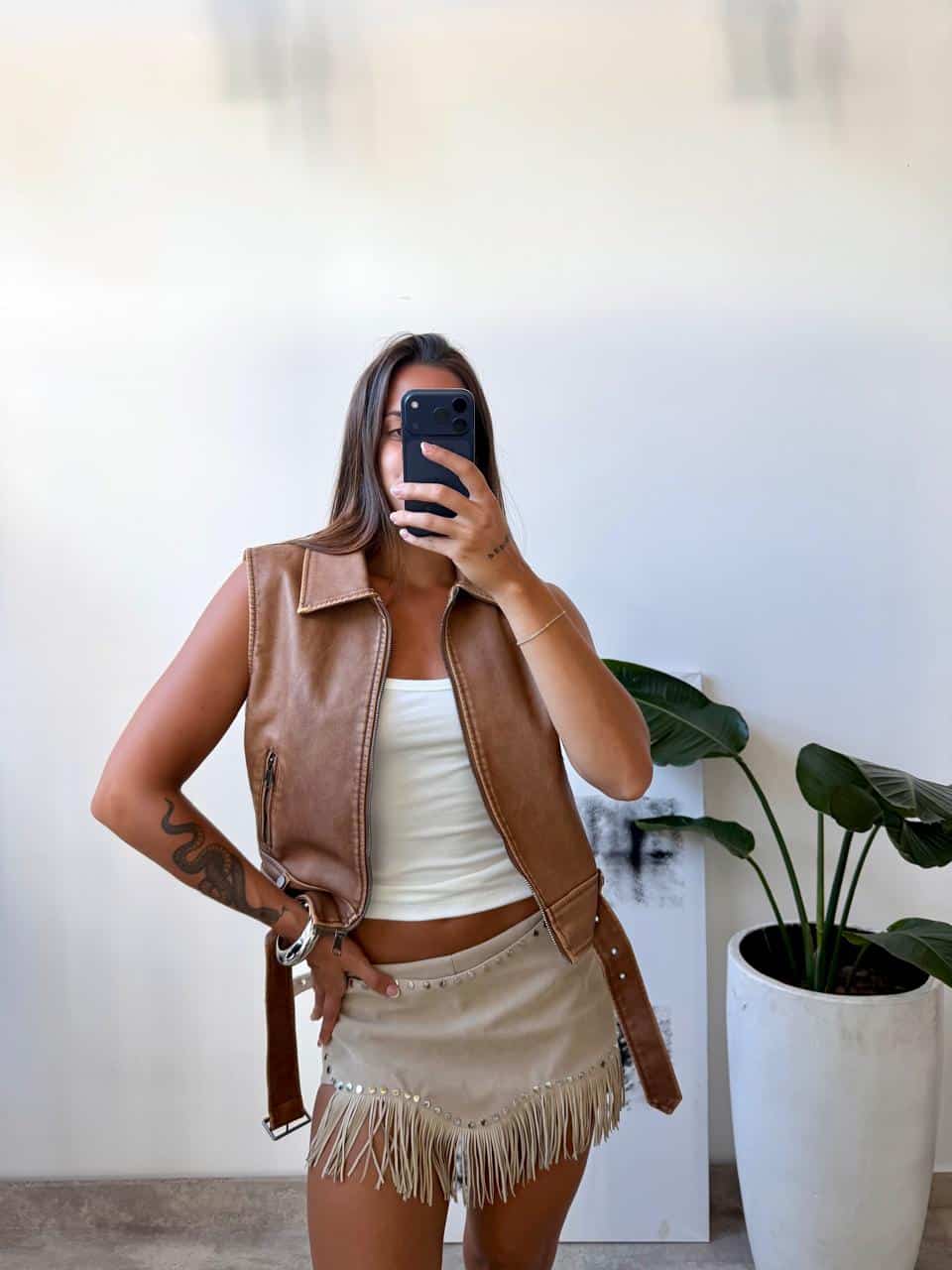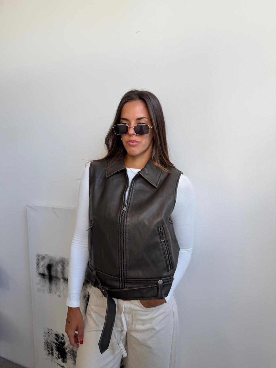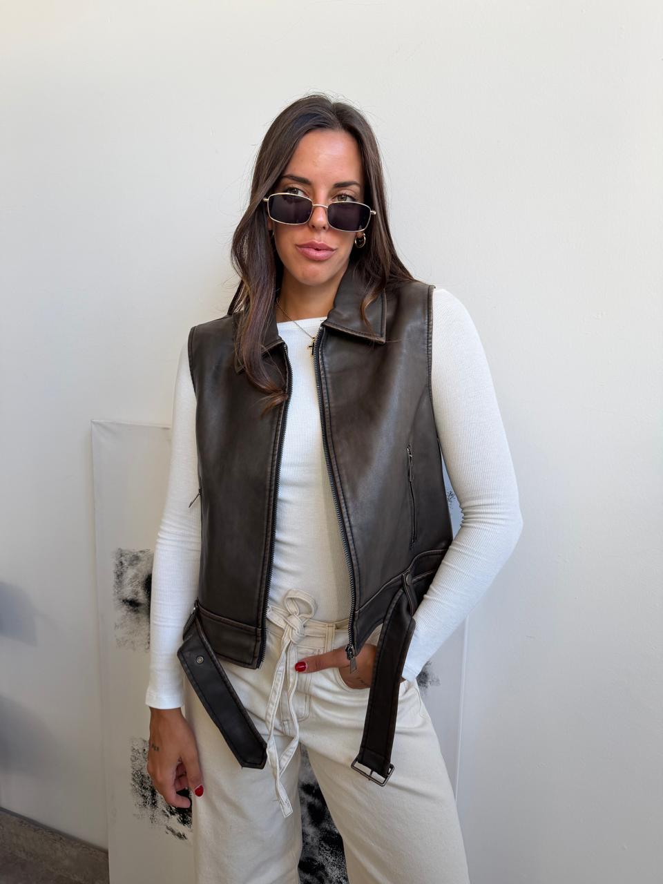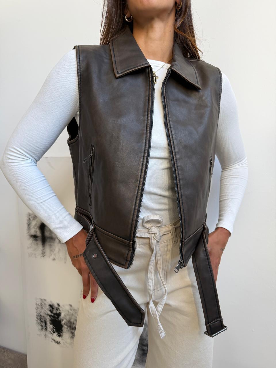 Chaleco de ecocuero. Talle unico (S al L aproximadamente).