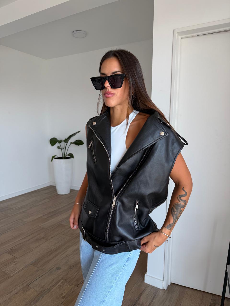 Chaleco de ecocuero. Talle unico (S al L aproximadamente).