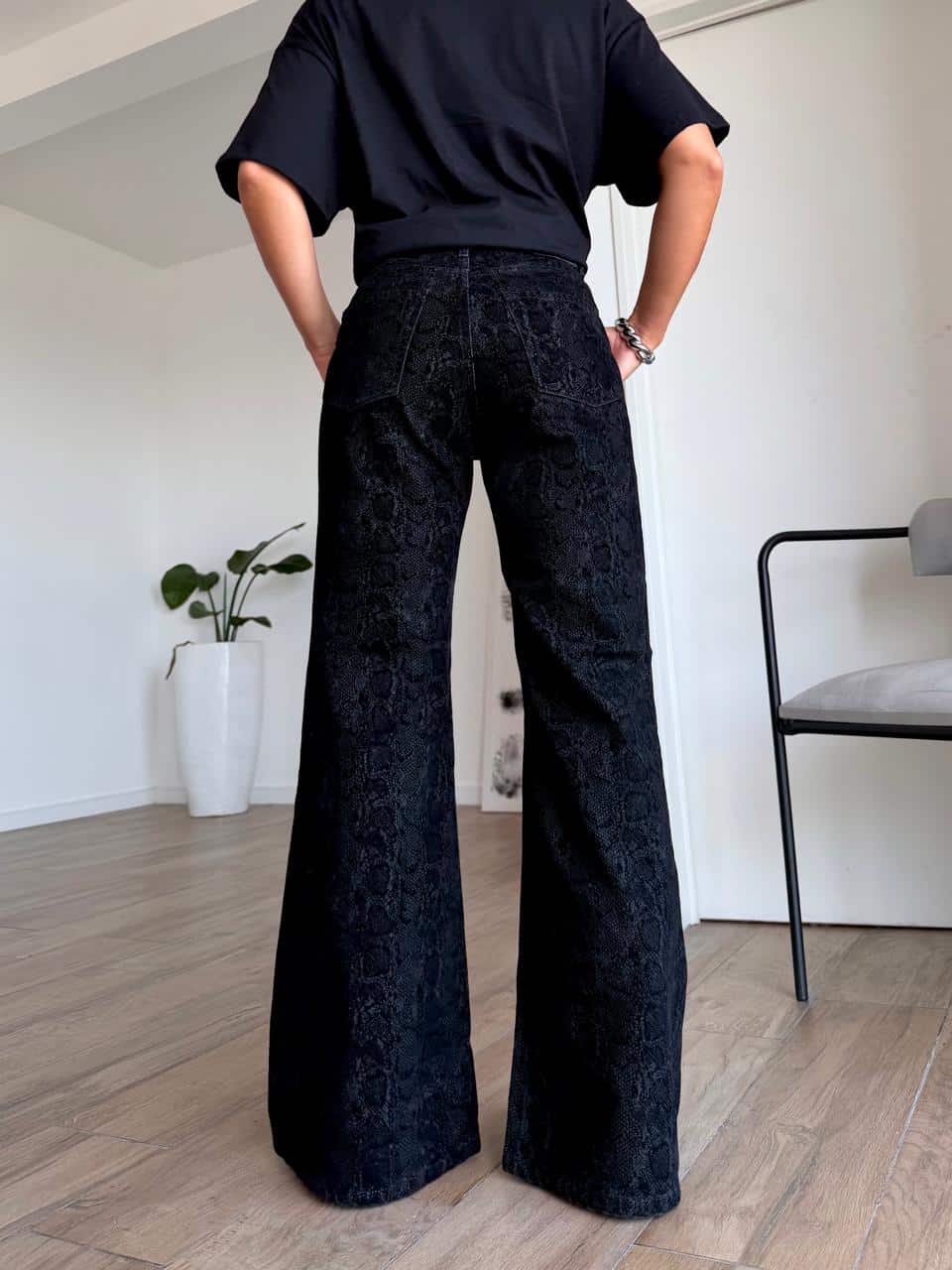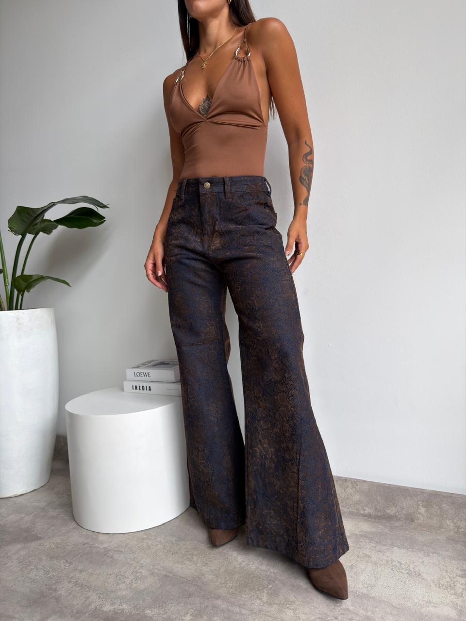 Wide leg rigido tiro alto con estampado de serpiente.