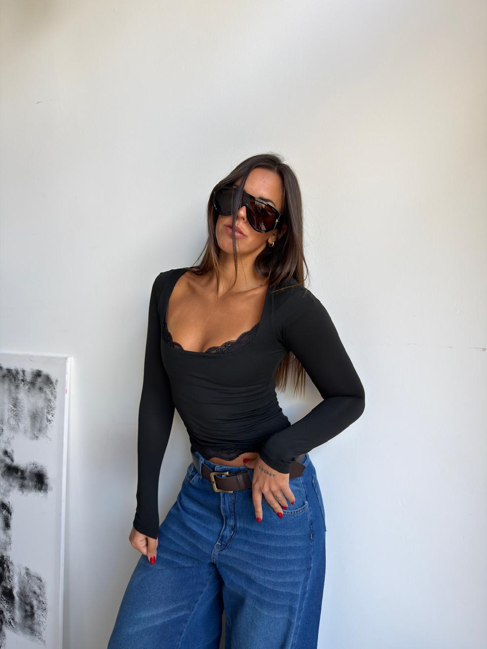 Remera ml corpiño puntilla modal soft. Talle único (S al L aproximadamente).