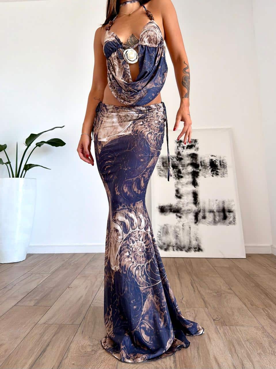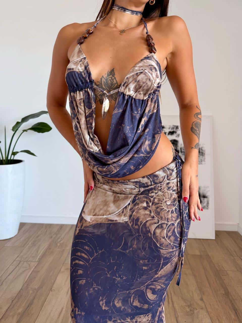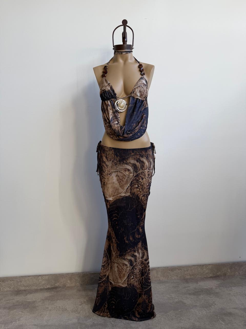 Set de top buche y pollera. Talle unico (S al L aproximadamente).