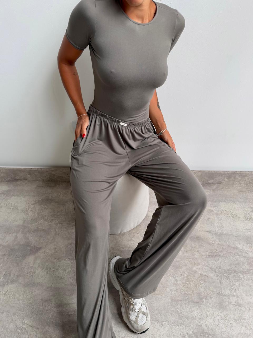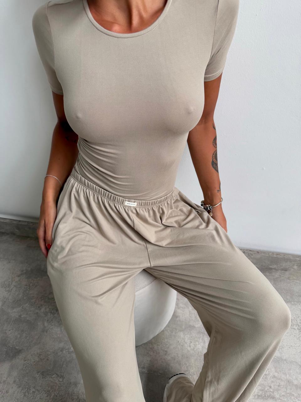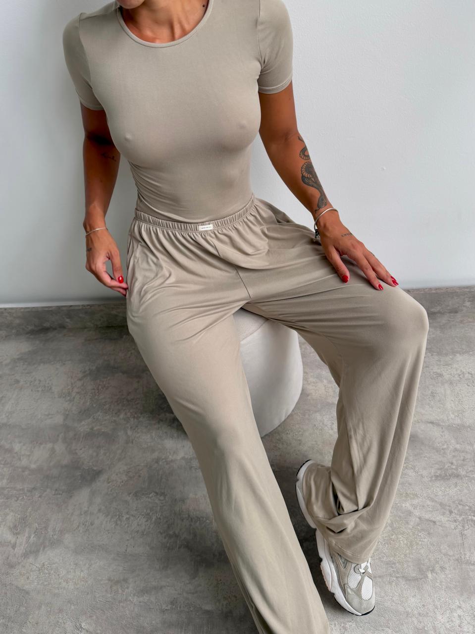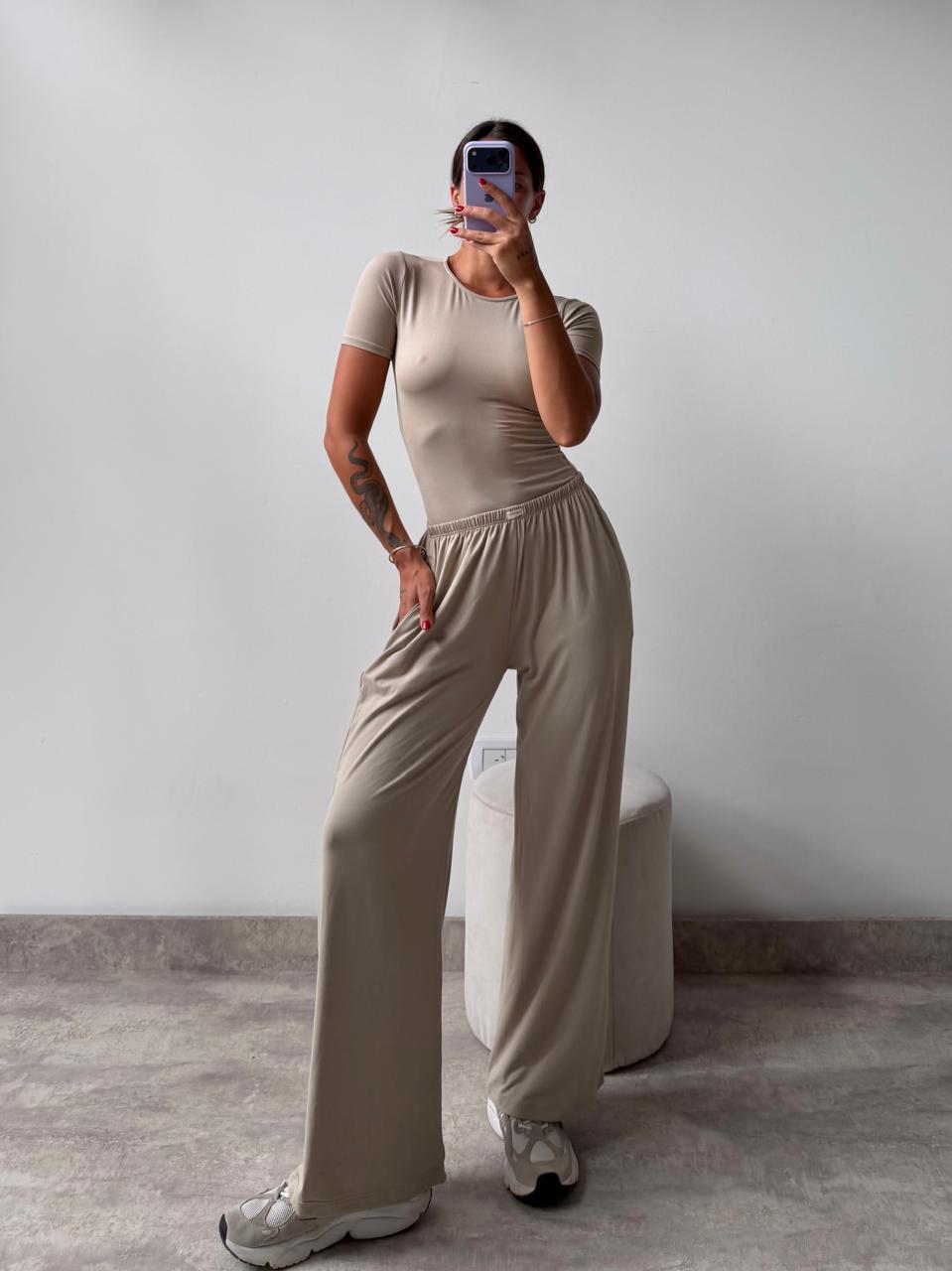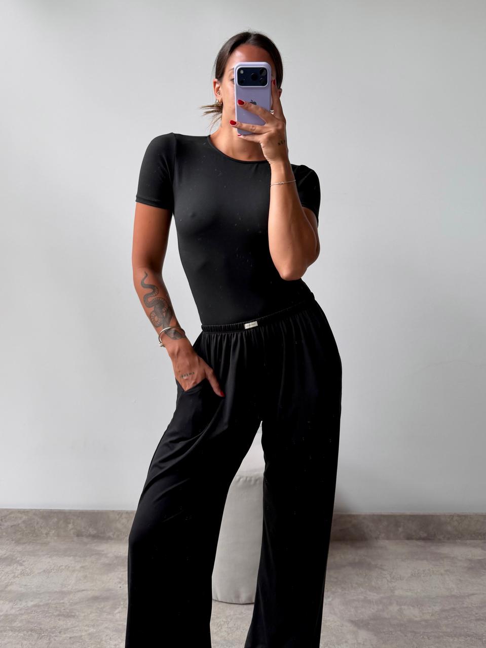 Set remera y pantalón de modal. Talle único (S al L aproximadamente).