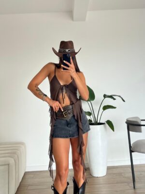 Blusa buche con lazos, de microfibra. Talle único (S al L).