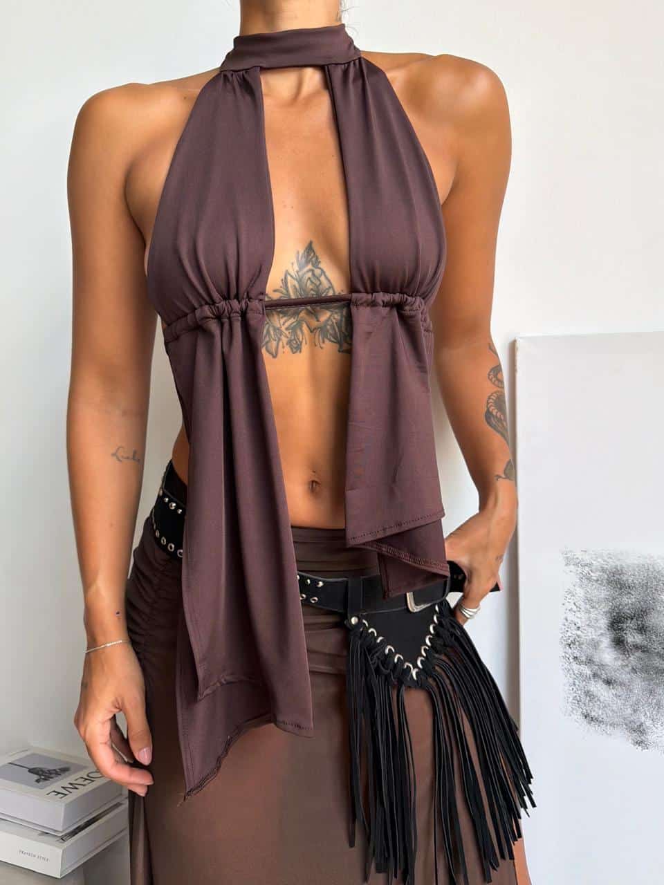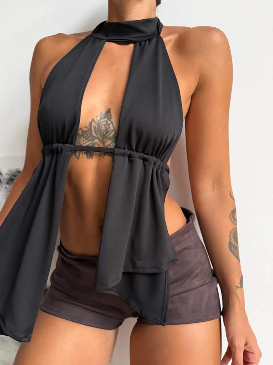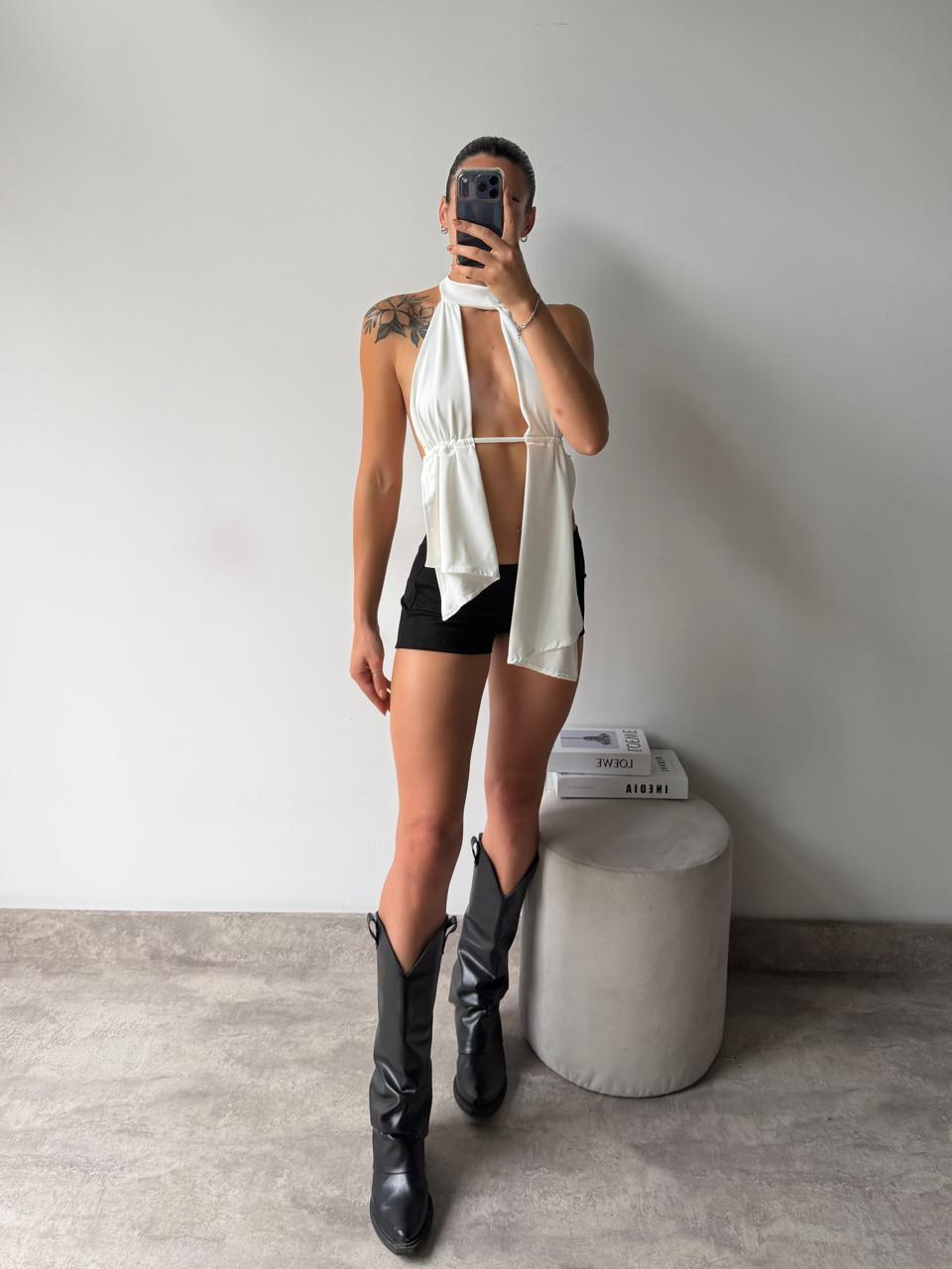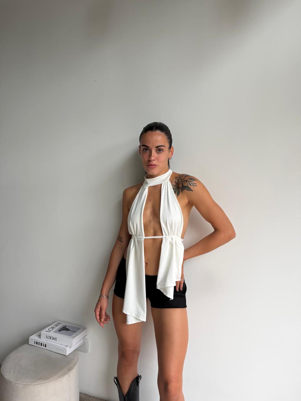 Top irregular de microfibra. Talle unico (S al L aproximadamente).