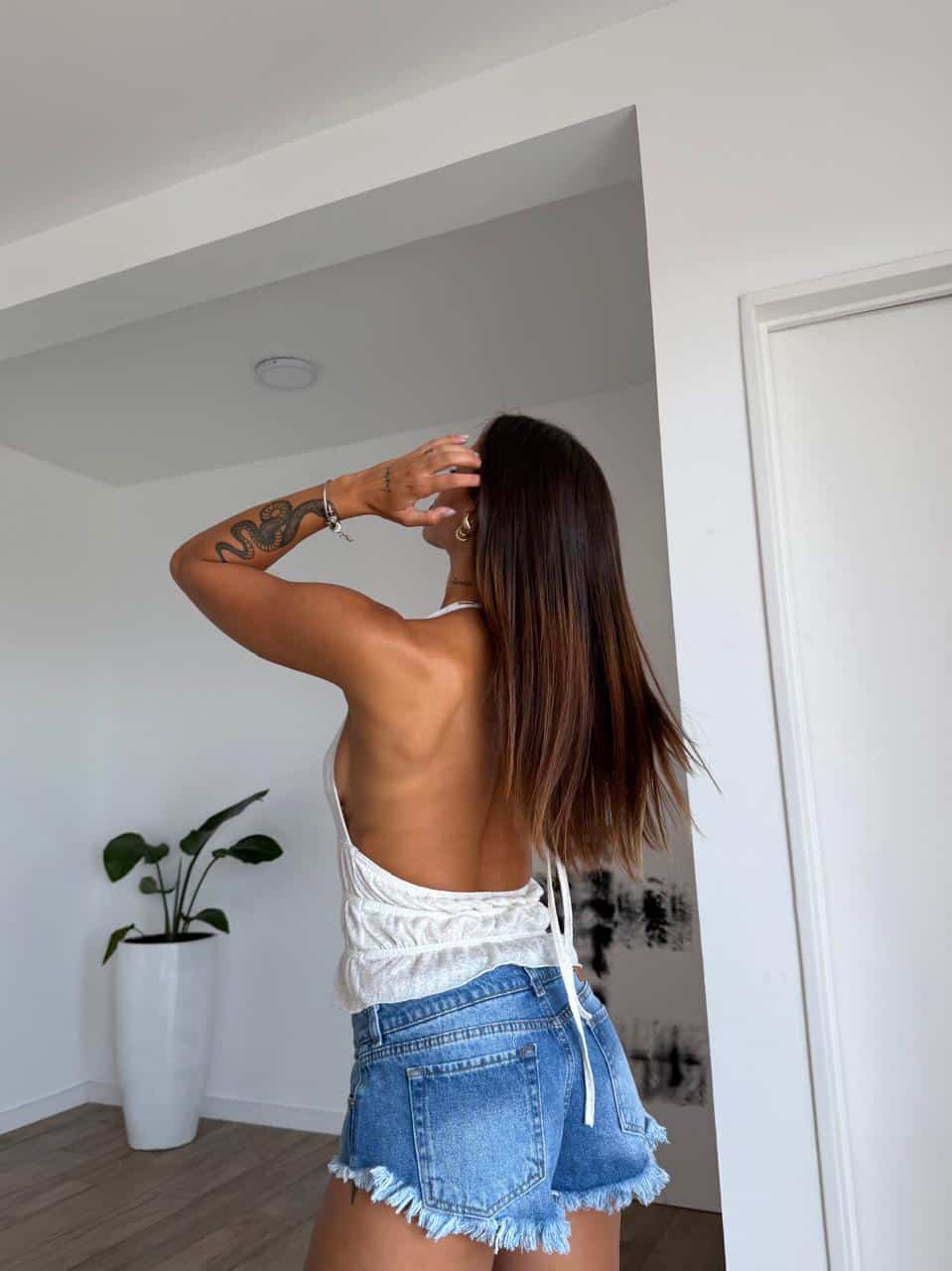 Top triángulo atar frunce de lanilla. Talle único (S al L aproximadamente).