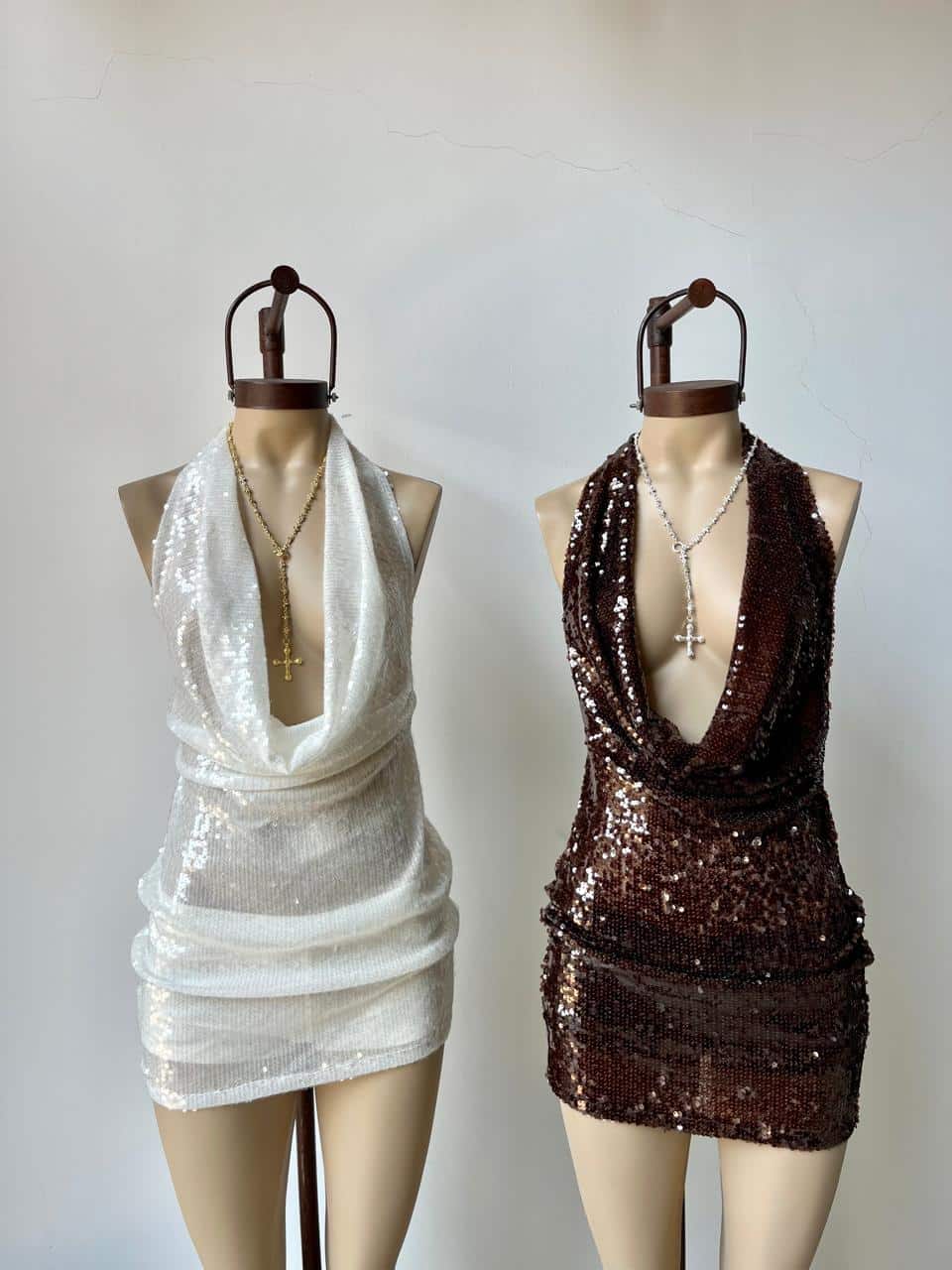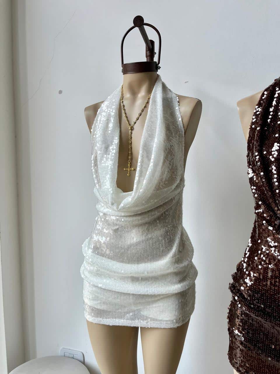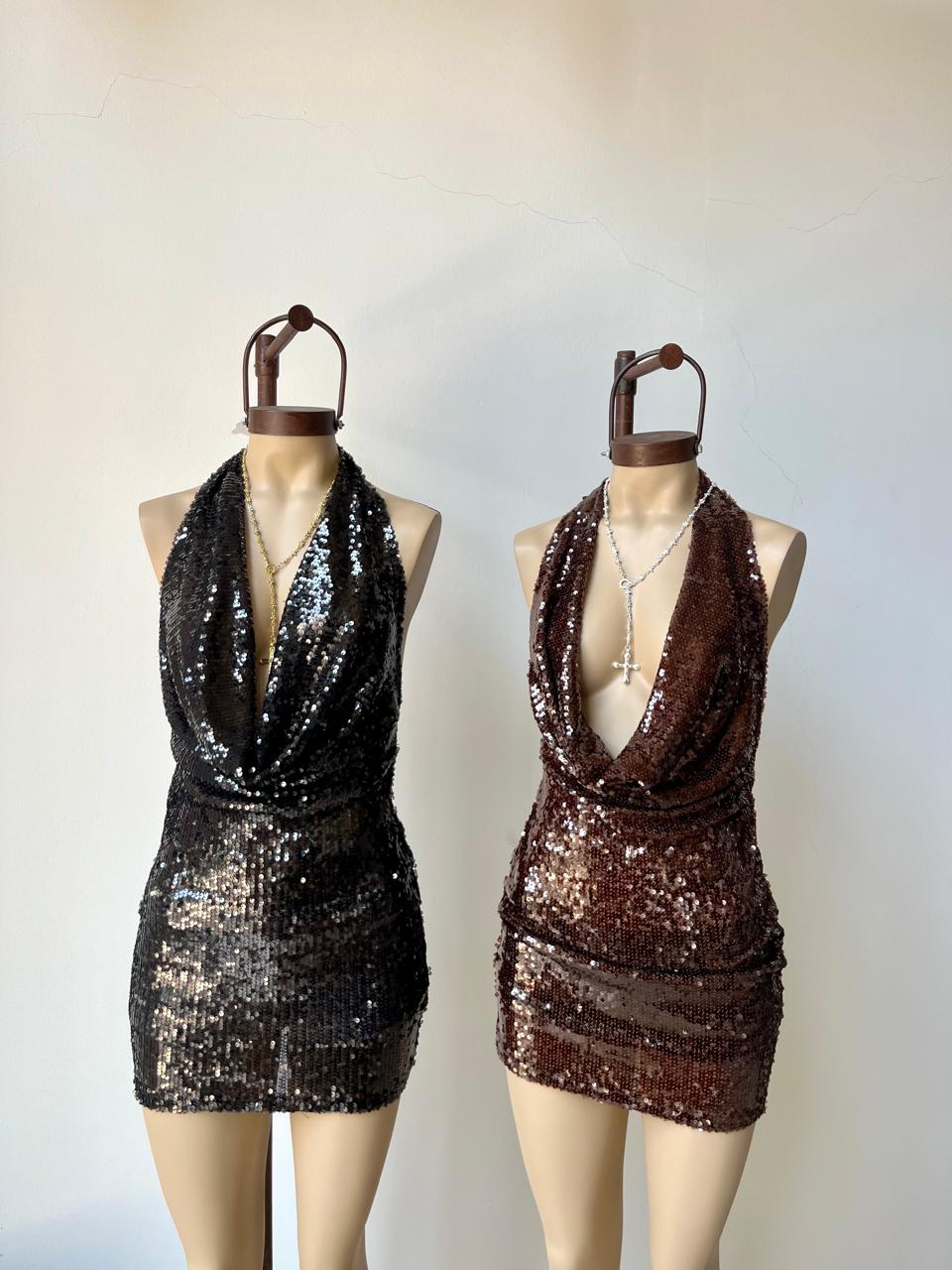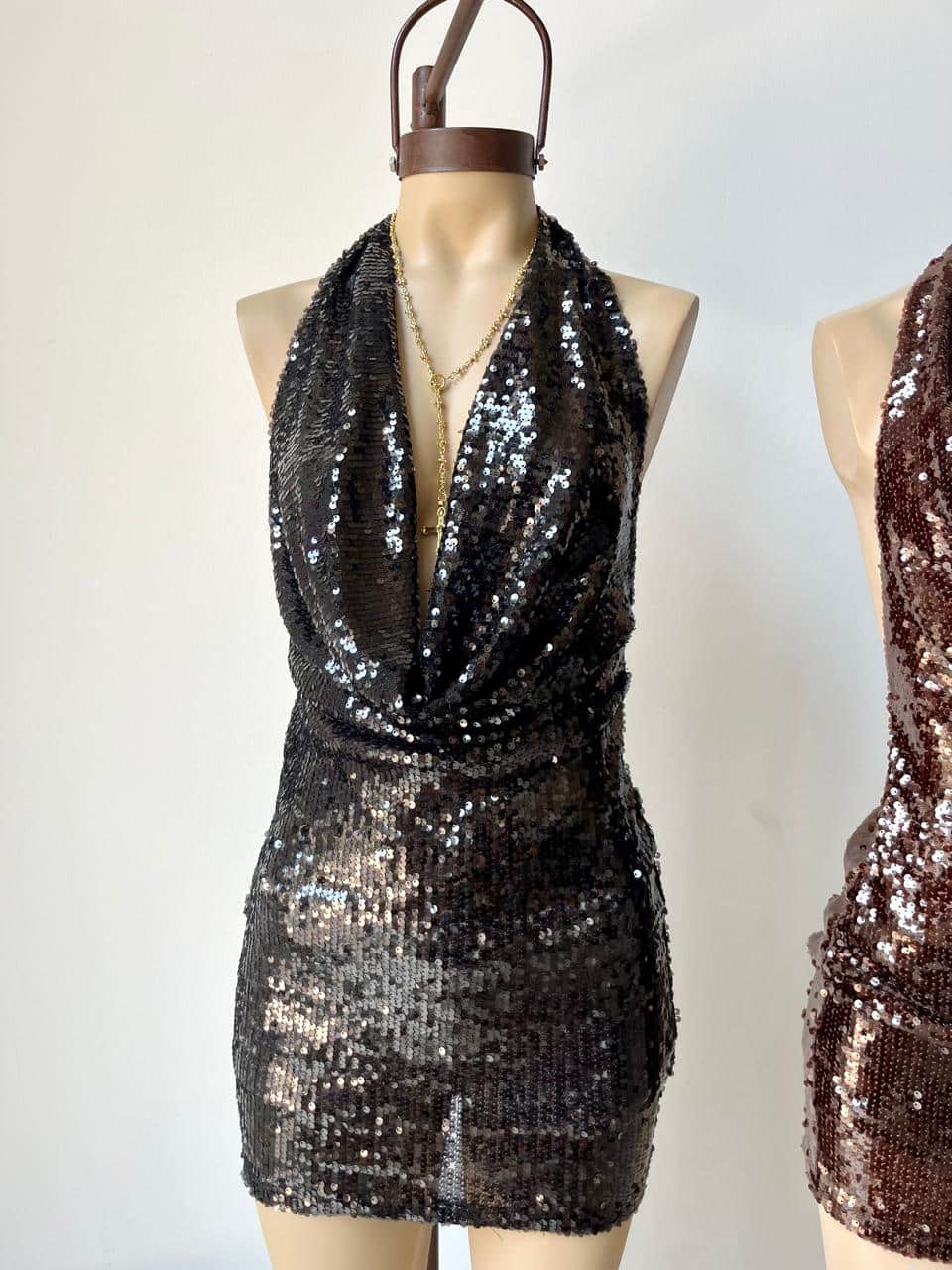 Vestido buche de lentejuelas. Talle único (S al L aproximadamente).