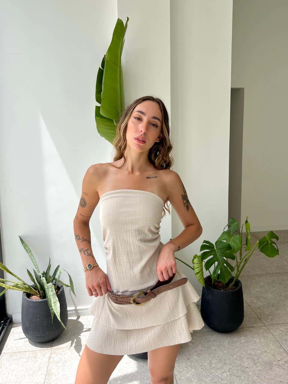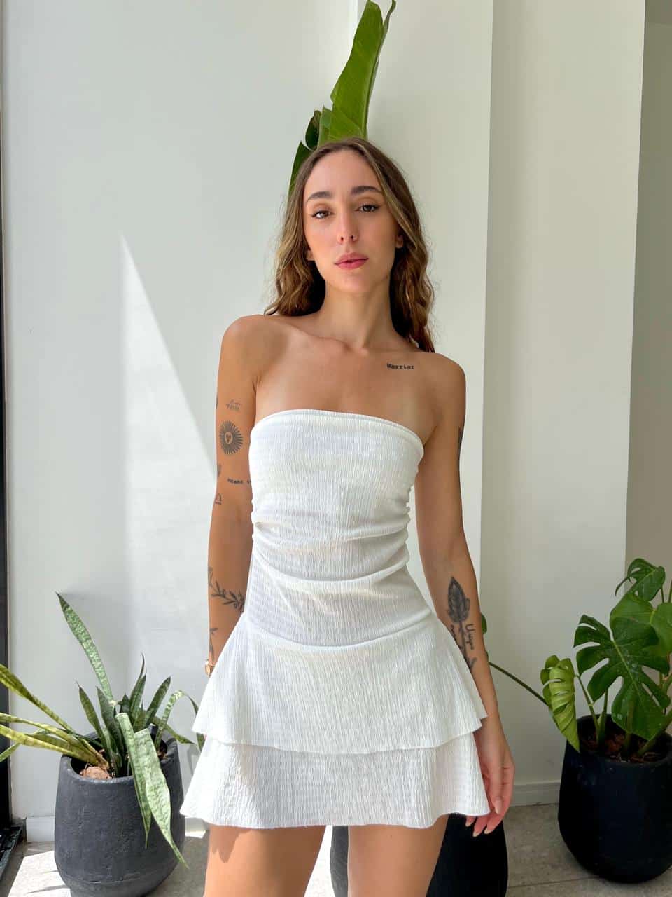 Vestido strapless de bambula con volados. Talle unico (S al L).