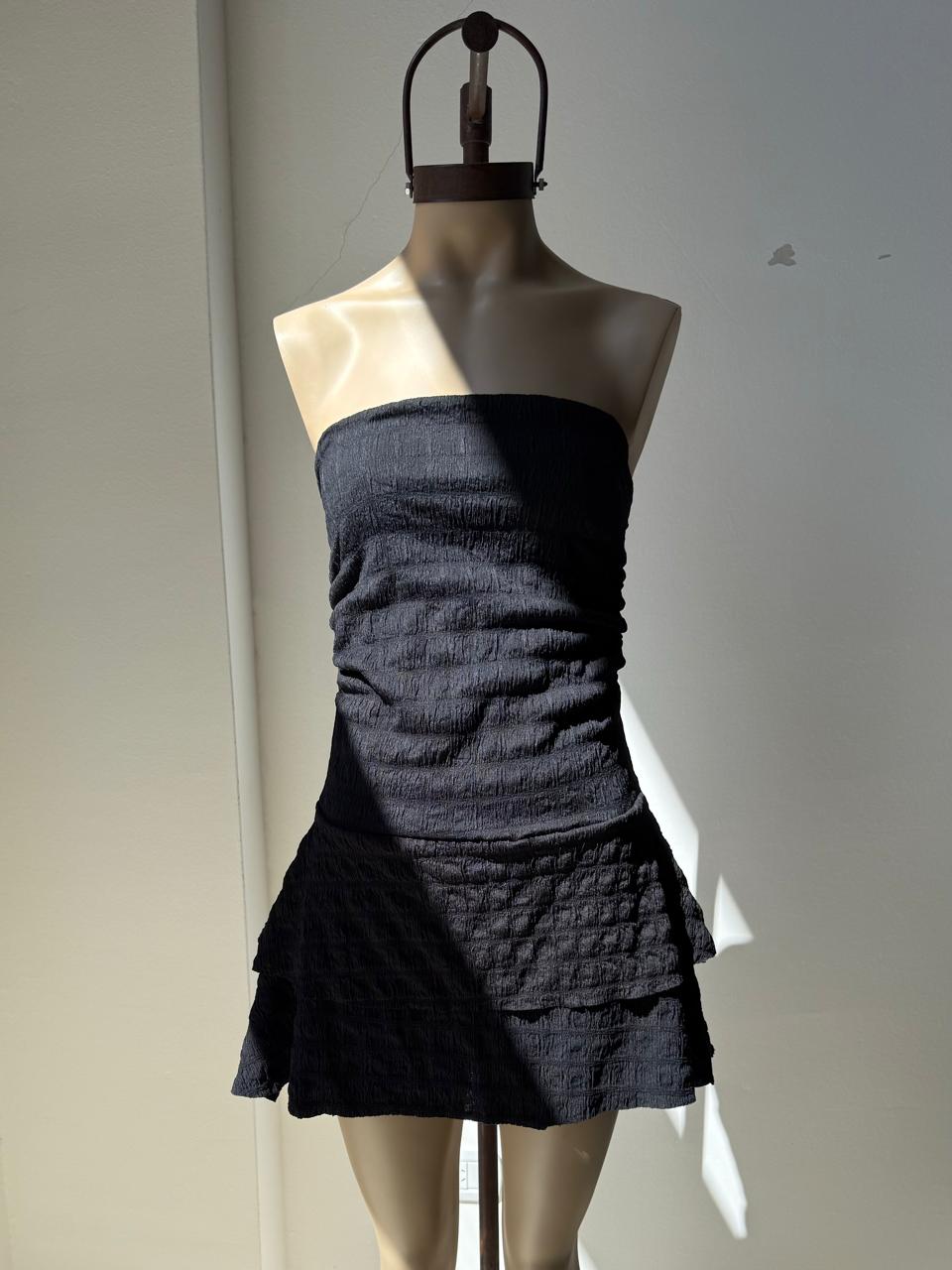 Vestido texturado strapless con volados. Talle unico (S al L aproximadamente).