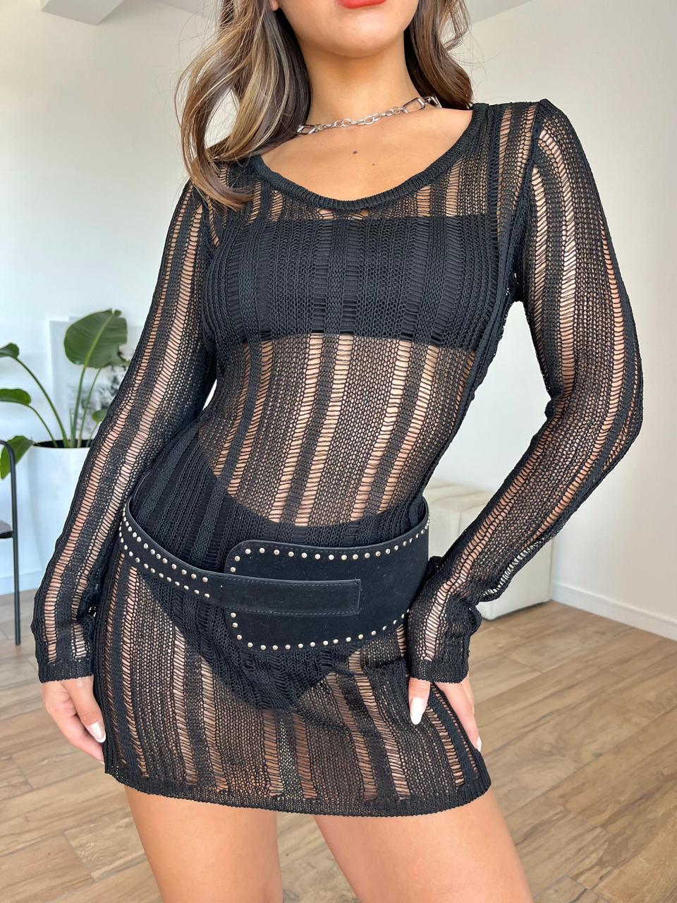 Vestido de tejido (crochet) escote en V. Talle unico (S al L).