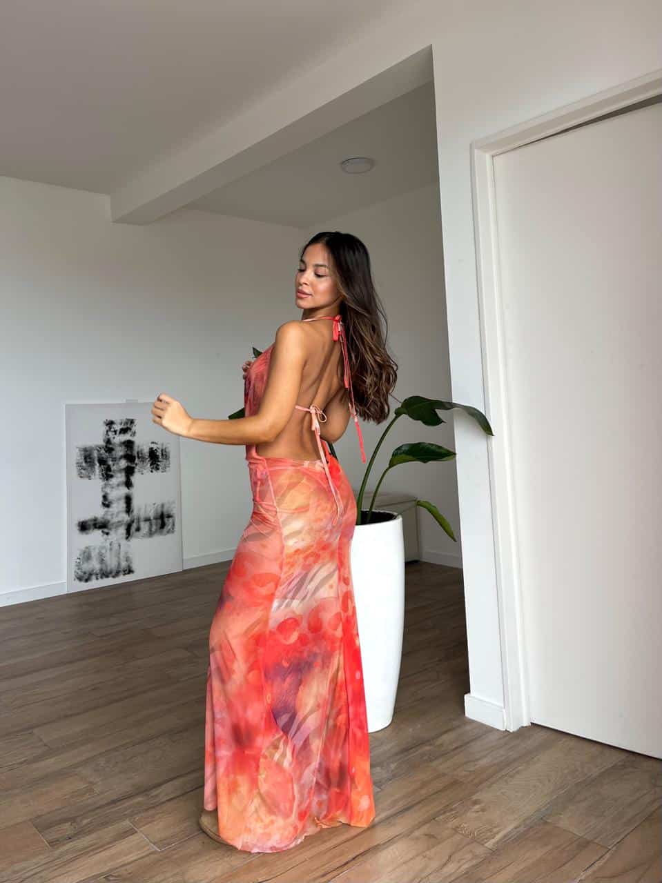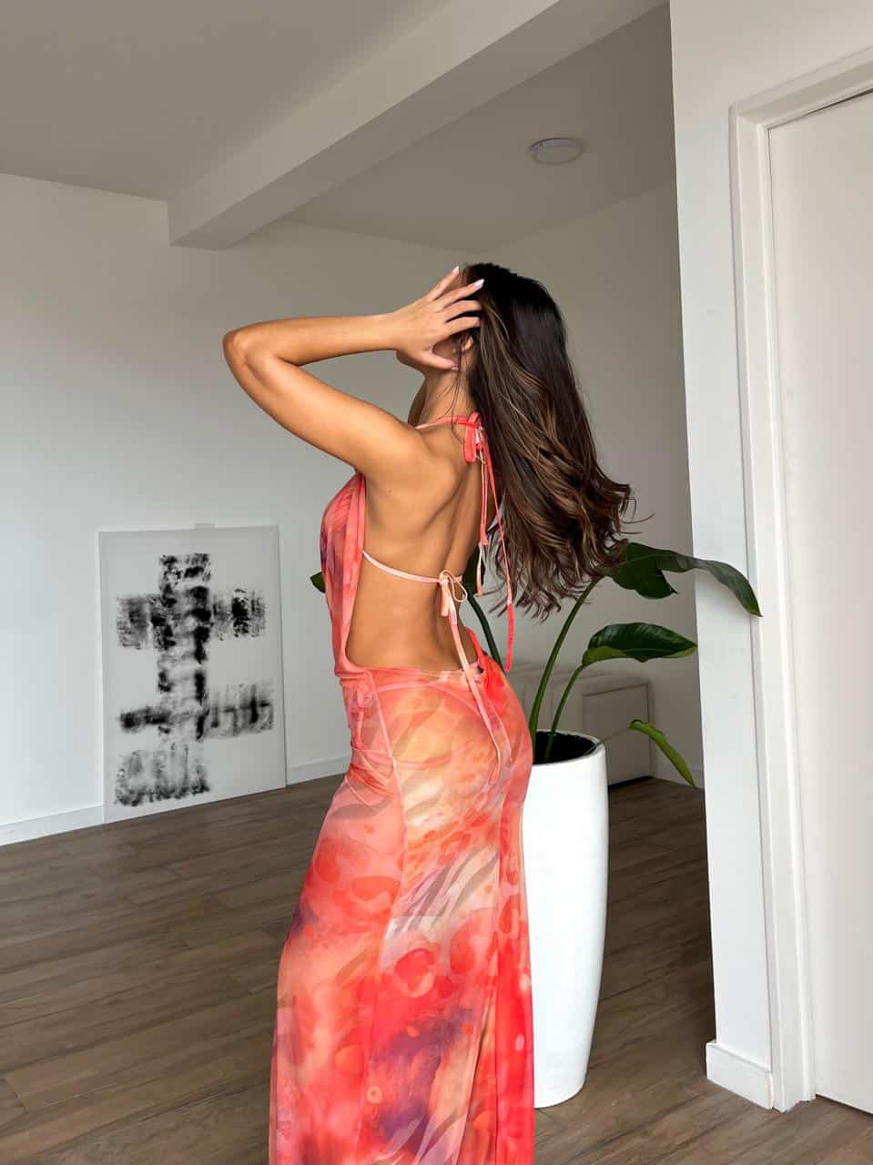 Vestido de tul estampado, talle único (S al L). NO INCLUYE BIKINI.
