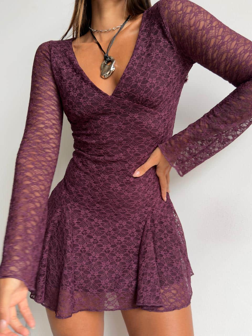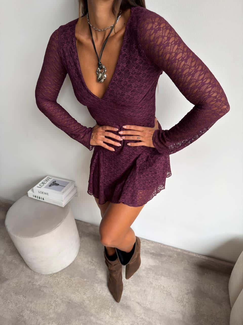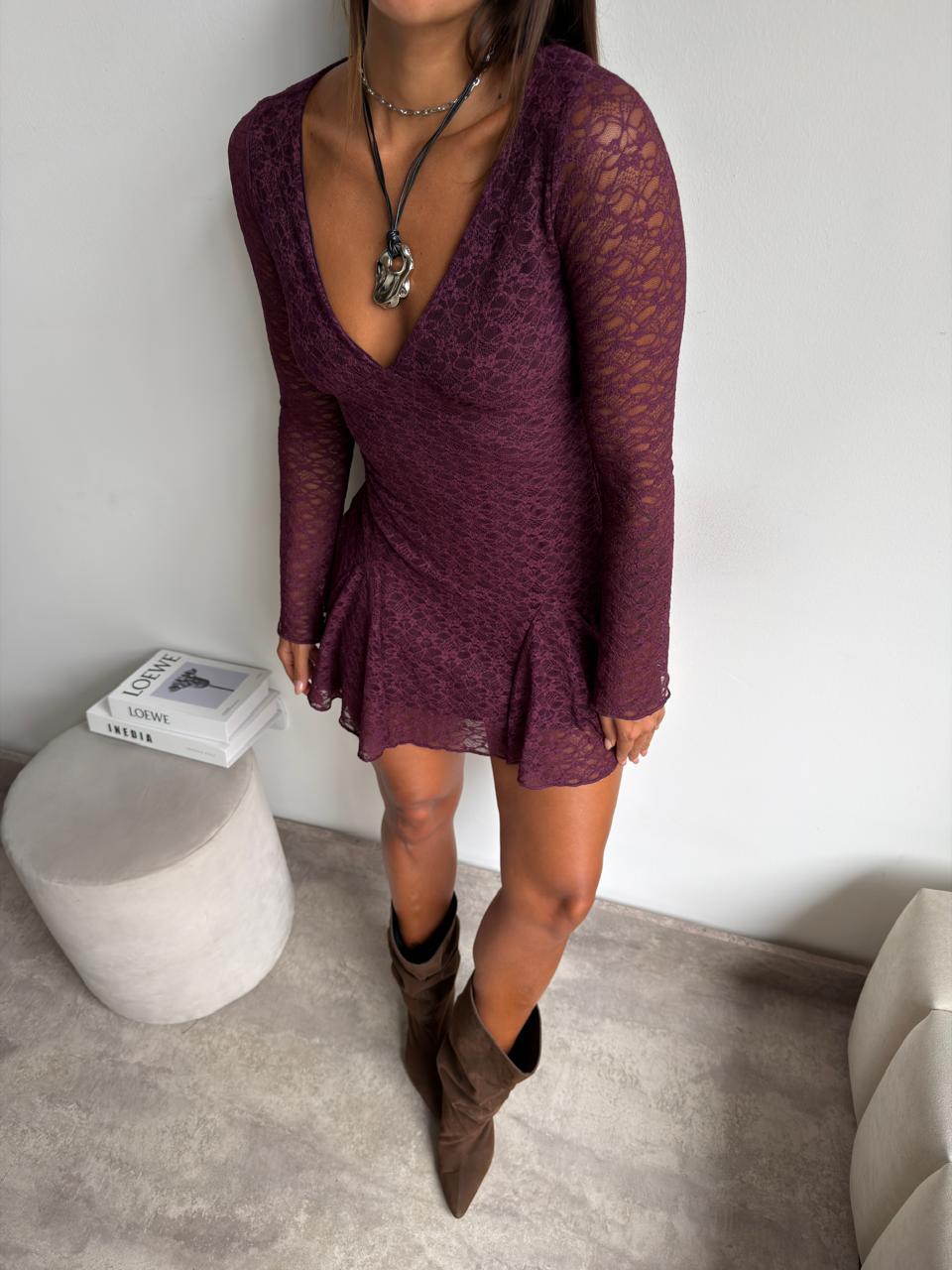 Vestido de encaje con volado. Talle único (S al L aproximadamente).