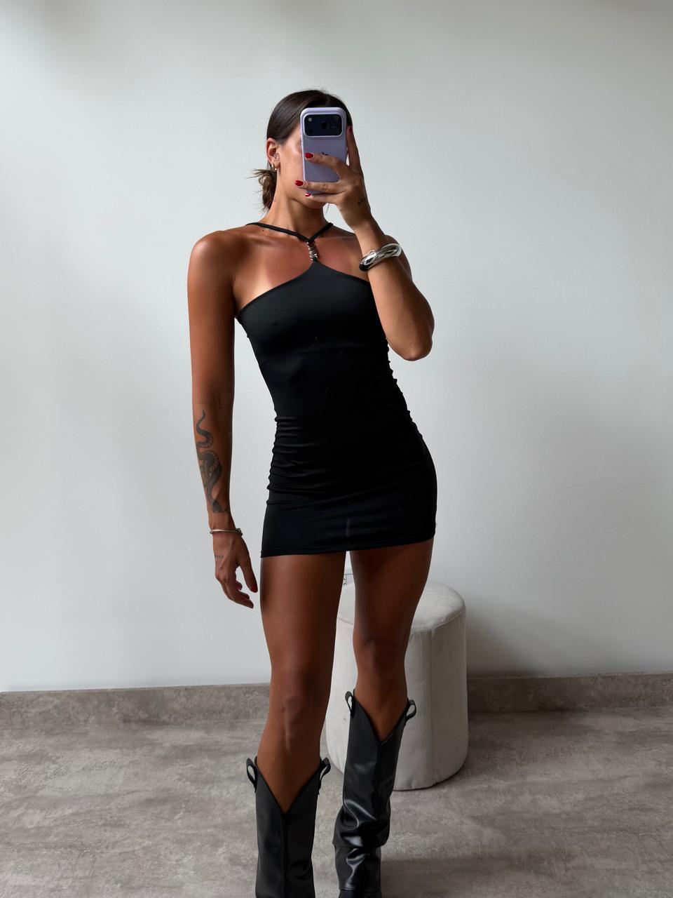Vestido de microfibra con detalles plateados. Talle unico (S al L aproximadamente).