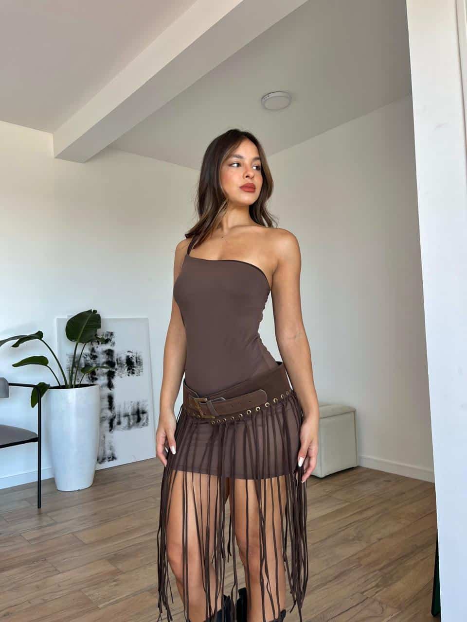 Vestido de tul con body de microfibra. Talle unico (S al L).