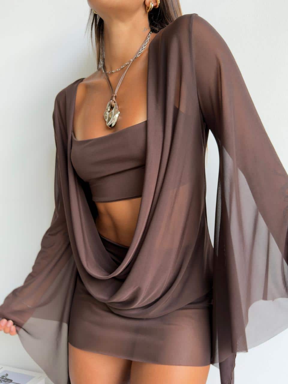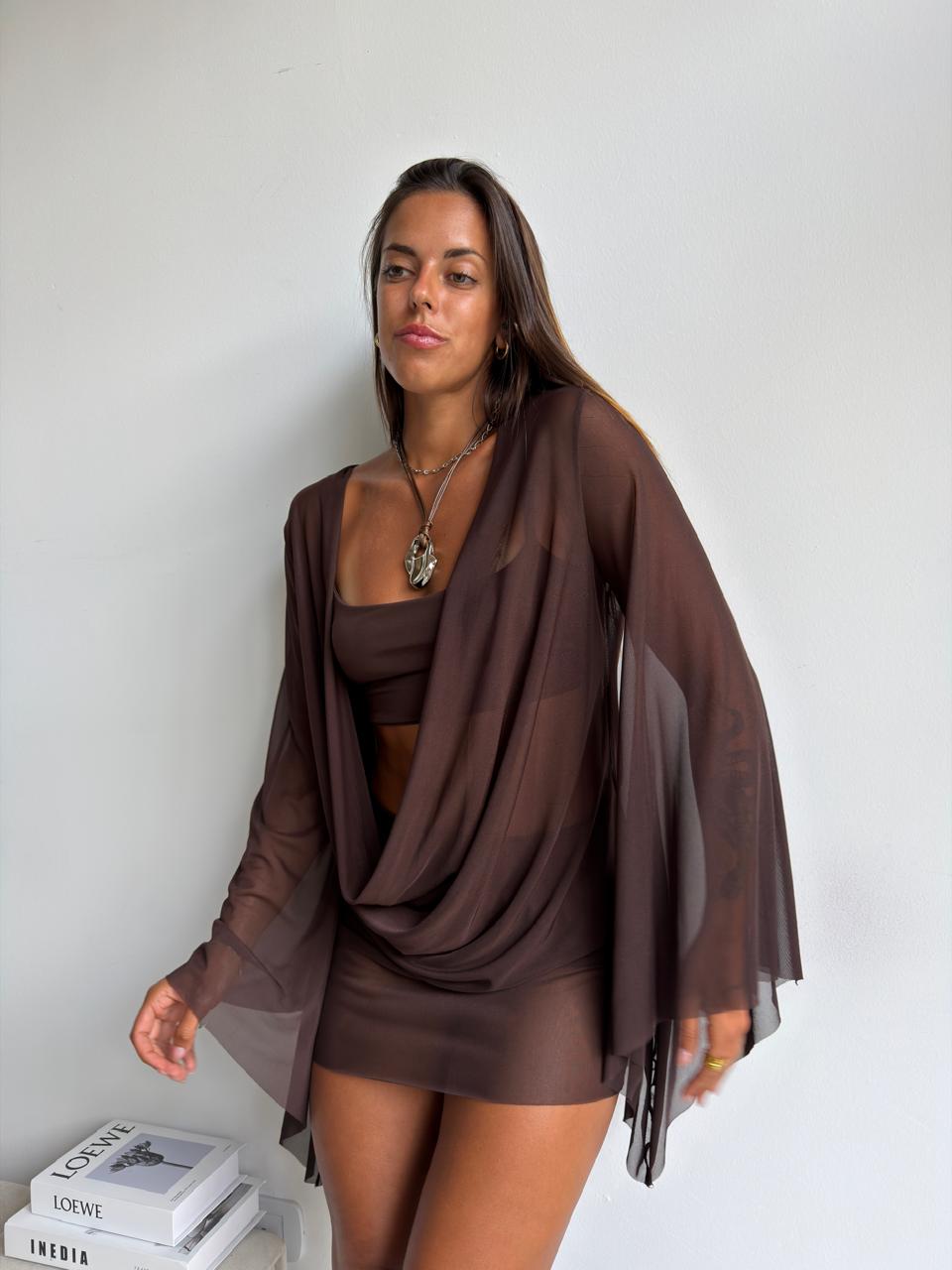 Vestido de microtul con buche. Talle unico (S al L aproximadamente).