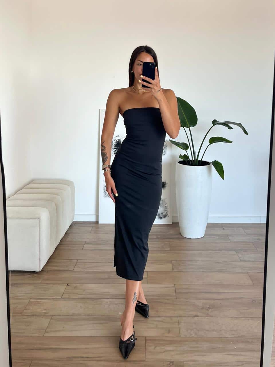 Vestido strapless de microfibra, talle unico (S al L).